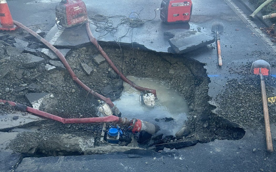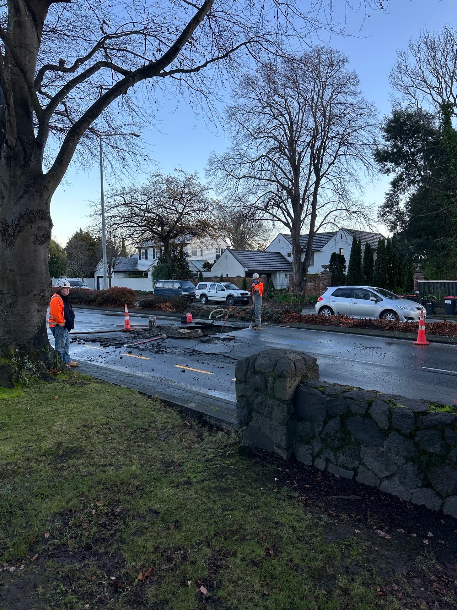 On Friday, which was the day after we arrived back in the country and on which I was preparing this sermon, I saw an email Simon had sent to the staff to say that the waterpipe on Fendalton Road had burst open, resulting in a large hole in the road [see slide].